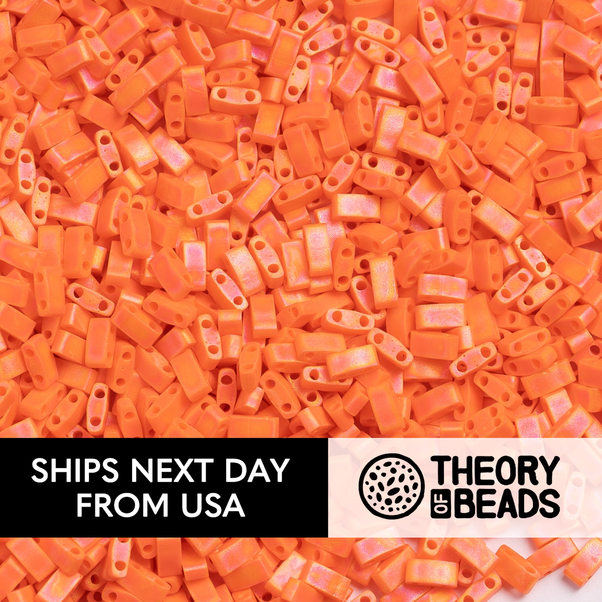 Need an exciting beading option for your next DIY jewelry project? Japanese Miyuki Tila Beads are just the thing with a flat large surface and two 0.8mm holes that are perfect for beadweaving. These matte orange tila beads in medium size are perfect to pair with other lighter colors in contrast and will add brilliance to your tila bead jewelry!
